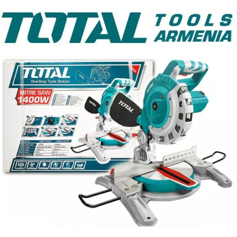 Электрическая Угловая Пила Total TS42142107 1400 Вт Это универсальный электроинструмент, предназначенный для резки и торцовки различных деревянных заготовок, подгонки деревянных профилей, плинтусов и наличников. Данная модель отличается продолжительным сроком службы за счет двигателя с высоким рабочим ресурсом и устойчивого к повреждениям алюминиевого основания. Система пылеудаления с мешком для сбора опилок отвечает за чистоту и хорошую видимость зоны реза. Для удобства работы предсмотрены струбцина для фиксации заготовки и расширители рабочего стола. Защитный кожух повышает безопасность оператора. Мощность: 1400Вт. Напряжение: 220 - 240 В / 50 - 60 Гц. Без Саласки. Частота вращения: 5000 об/мин. Диаметр оснастки: 210 мм. Ширина реза 0° X 0 ° : 120 х 60 мм. Ширина реза45° X 0 ° : 83 х 60 мм. Ширина реза 0 ° X 45 ° : 120 х 30 мм. Ширина реза 45 ° X 45 ° :83 х 30 мм. Вес: 8кг.